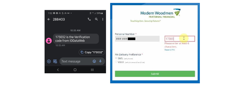 After your identity has been validated, we’ll send a code/one-time PIN (via SMS/text or voice) to your mobile device or landline phone. This will show us that you have access to that device – an important step in verifying your identity.